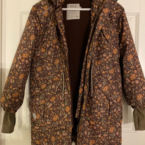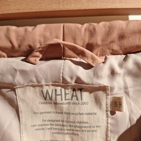 Wheat jakke i størrelse 140 for jenter, laget med vanntett og vindtett stoff. Jakken er rosa og designet for barn.