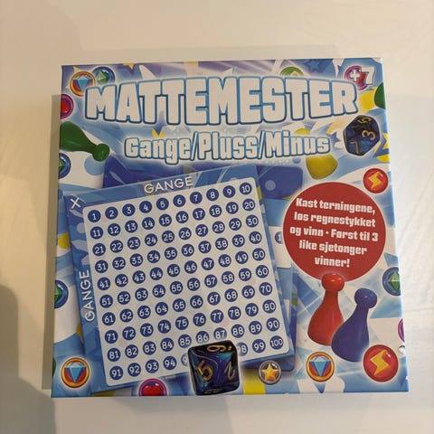 Mattemesteren Brettspill med 9 morsomme spill som lærer barn å telle og løse enkle matteoppgaver. Inkluderer spill som teller, illustrasjoner, tall og minusregning. Spillet er designet for å gjøre matematikk lett og underholdende for barn.