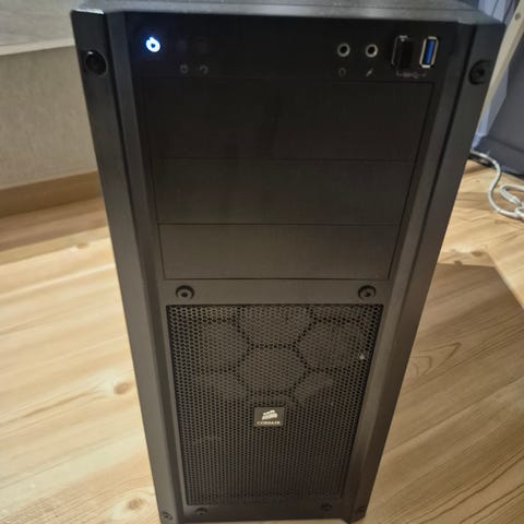 Hjemmebygget PC med Crosair kabinett, strømforsyning og Intel hovedkort, i7 4770k og 4x4Gb RAM (16gb). Gainward GTX 660 grafikkort samt to SSD (120 og 240gb) og 2tb Western Digital harddisk og LiteOn DVD brenner.