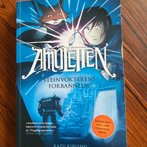 Kazu Kibuishi Amuletten bokserie bestående av 3 bøker. Serien inkluderer titlene Steinvokteren, Steinvokterens forbannelse og Amuletten og mørket. Bøkene er på norsk og passer for lesere som er interessert i fantasy og grafiske romaner.