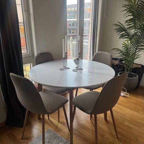 Lite brukt og svært velholdte, uten synlige skader eller slitasje. Komfortable å sitte i. Selges samlet. Må hentes.