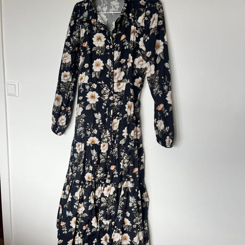 Pieces Hverdagskjole i størrelse M, svart farge med blomsterprint. Laget av viskose materiale. Passer for kvinner.