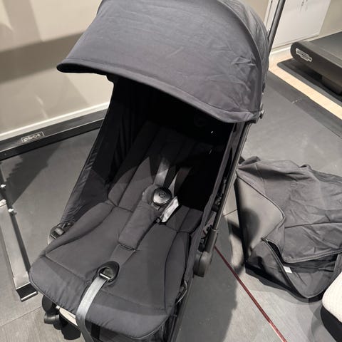 CYBEX Coya Platinum Line matt sort/sort. Kjøpt sommeren 2025, lite og pent brukt! Genial reisevogn, lett å manøvrere og brette sammen. Passer i hattehyllen på fly. Kan legges helt flatt og derav egnet fra nyfødtalder, vi la najell babynest i og det fungerte topp.