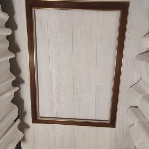 Plastglass, sånn papirkant/papirramme og bakvegg.