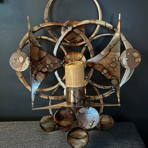 Skikkelig robust og stilig Brutalist lysestake selges. Den er i perfekt stand og helt fantastisk ting å ha. Den har en slags kunstnerisk preg over seg og passer Kansje til den som har det meste men ikke akkurat denne. Målene ser du på bildet. Sender gjerne men på kjøpers regning.