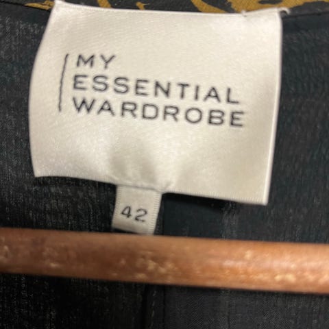 Selger min råstilige kjole i grå denim fra My Essential Wardrobe i str 40. Ikke brukt. Halvzip foran, skjulte lommer i sidene, A-fasong, rekker til knærne (jeg er 170 cm), avslappet fasong, ermer til albuen. Kan sendes med Postn/Bring mot porto kr 73. Oppgjør Vipps.