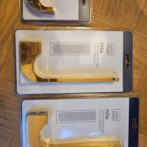 Toalettpapirholder med tilhørende knagger selvklebredene