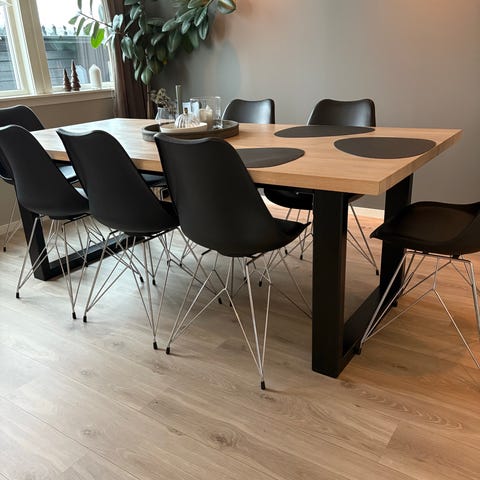 6 spisestuestoler fra Skeidar selges samlet for 2000 kr.