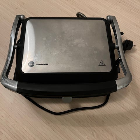 Wilfa kontaktgrill med justerbar temperaturkontroll. Grillen har en kompakt design med non-stick grillflater og indikatorlys for drift og oppvarming. Egnet for grilling av kjøtt, grønnsaker og smørbrød.