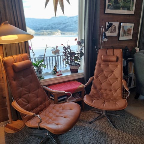 2 grå loungestoler selges. Disse har bruksspor. Trekk på sitte- og ryggpute er nyvasket, og resten ner steamet. Klar for nye eier.