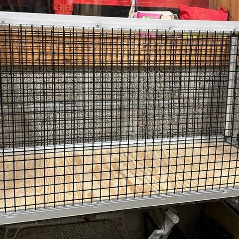 Det er skrudd på en ramme under for å bygge opp buret litt men dette kan enkelt fjernes (kan også fjernes før salg hvis ønskelig).