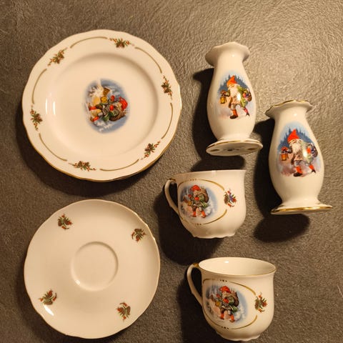 Nydelig servise for 6 personer, opplegging fat, termos, egg kopper etc etc Selges kun samlet. Sender ikke.