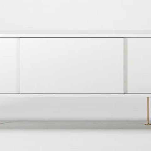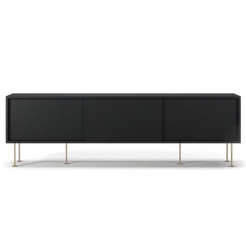 Vogue mediabenk fra Decotique med en ramme med to skyvedører i samme farge og fem ben med en 18,5 cm høyde.