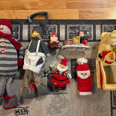 Selger en flott samling julefigurer bestående av flere nisser og alver i ulike størrelser og design. Klassiske røde, hvite og gullfargede detaljer – gir ekte julestemning.