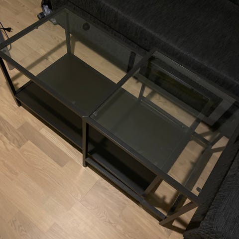 Selges pga flytting. Noen merker i malingen (se siste bildene) og noen små riper i glassplata, men de synes minimalt.