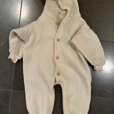 Pent og lite brukt heldress/pysj i ull og silke fra Nøstebarn. Pysjen krympet dessverre så den nå en ca str. 62/68, men egentlig en 68/74. Sydd igjen et hull på ryggen da jeg prøvde å strekke den ut, ellers veldig pen. Brukt kun to ganger.