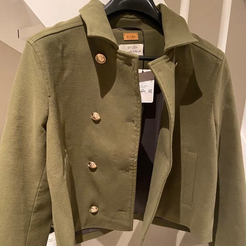 By Lien jakke, helt ny, i størrelse XS. Jakken er blå og laget av ull.