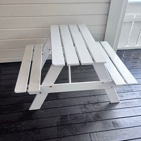 2 stk IKEA BUNSÖ barnestoler. Lite brukt,- kun noen få bruksmerker som er lite synlige. Stødige og behagelige å sitte på, både til utendørs og innendørs bruk. Kan stables.