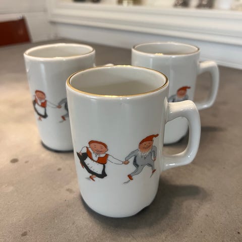 4 frokostsett med asjetter,kopper,skåler og eggeglass