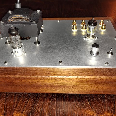 Selger ett par RCA 5691 Red Base (premium-versjon av 6SL7), kjent for svært lav støy, lang levetid og musikalsk, fyldig mellomtone i high-end rørforsterkere.