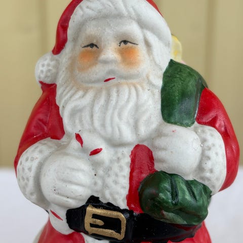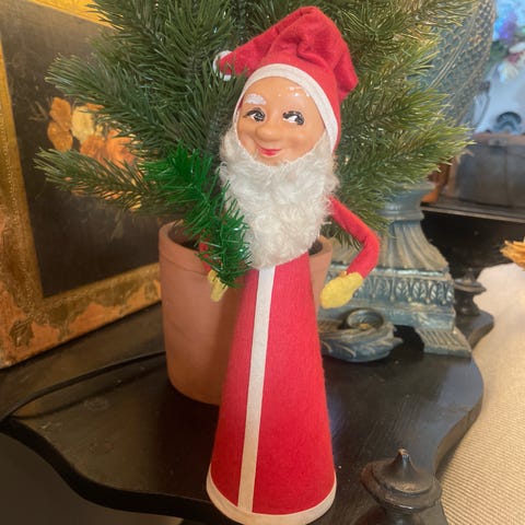 Jeg selger en kjempekul julenisse som nettopp har spist grøten sin og er svært fornøyd. Dwn ble laget julen 1958.