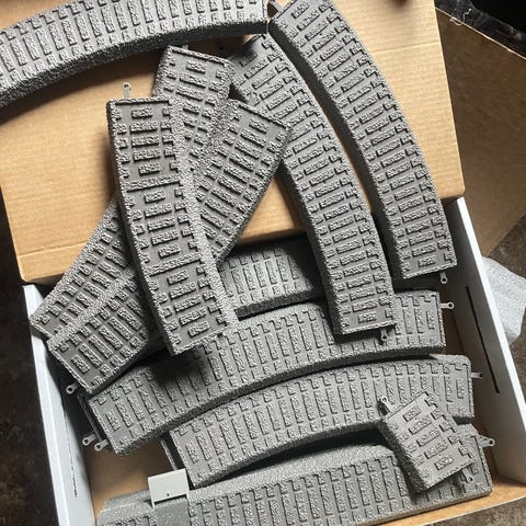 Til salgs et komplett sett med 92 deler modelljernbaneskinner i HO-skala (1:87) fra Lima. Perfekt for å utvide eller bygge ditt modelljernbanesett.