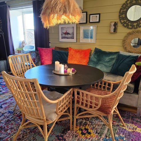 Har 4 stk (6hvis ønskelig), selges samlet for kr 4800. 1200 per stol. Mål kan oppgis, er en klassisk variant. Kan hentes rett etter jul! Kun brukt til styling, fin stand, ikke sittet i☺️