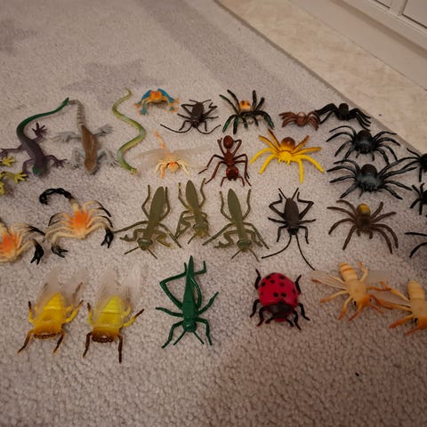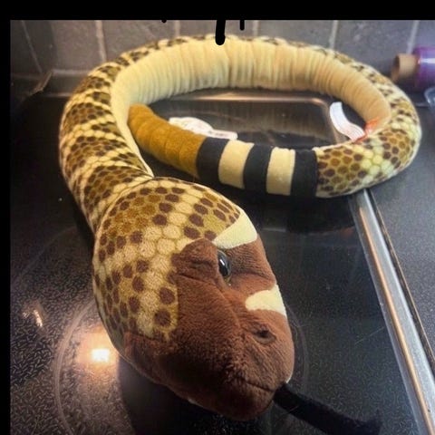 Små lekeslanger selges for 50 kroner totalt. Den lengste er 38cm strukket ut.