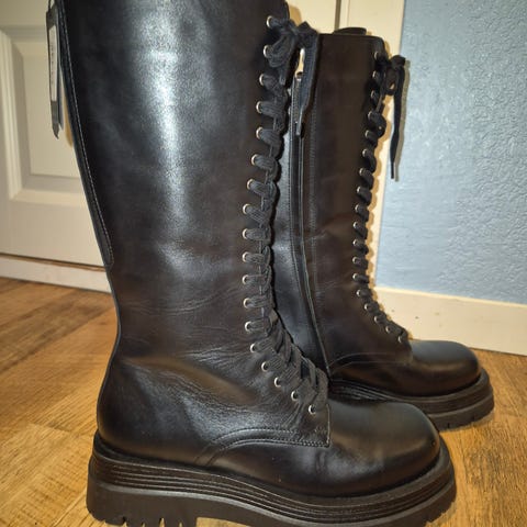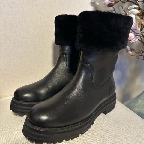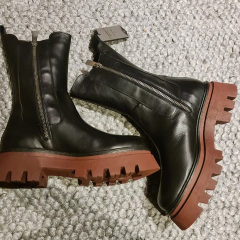 Bestselgende skinnboots fra Stockholm Design Group i str.39 laget i premium materialer. Komfortabel yttersåle med godt grep. Glidelåsen på innsiden og elastikken langs utsiden gjør skoen enkel å ta av og på samtidig som den tilpasser seg og sitter pent rundt leggen. En hverdagsfavoritt som passer til alt.