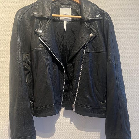 Object Ekte Skinnjakke Dame Svart Størrelse 38
