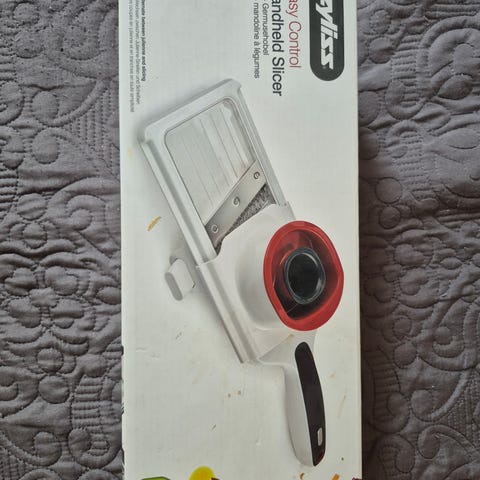 Mandolin med keramisk blad fra KYOCERA. Fingerbeskyttelse følger med.