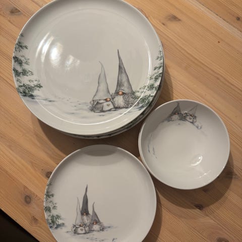 Åsa jul Hvit Frokosttallerkener selges for 250kr pr stk. hentes Jevnaker eller hos meg på jobb i Oslo eller Tønsberg eller sendes mot at kjøper betaler frakt