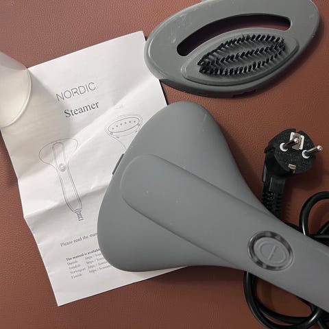 Et hendig lite dampstrykejern, har flere bruksområder bl.a. tradisjonell stryking, presse klær, vaske gardiner og fjerne fett (?).