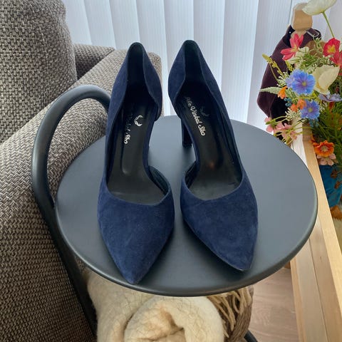 Enzo Poli mokkasine i størrelse 38. Skoene er svarte og har en klassisk design med metallspenne på fronten. Egnet for formelle og uformelle anledninger.