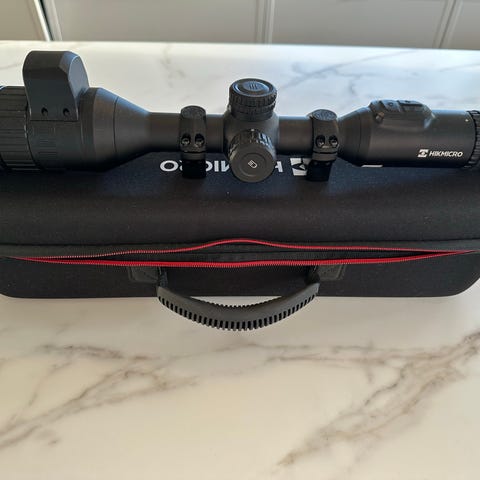 Guide TU435 Gen 3.0 termisk kikkert med termisk bildebehandling for jakt og overvåkning. Utstyrt med justerbare kontrollknapper og optikk for nøyaktig sikting. Passer til montering på rifle, leveres med beskyttelsesetui.