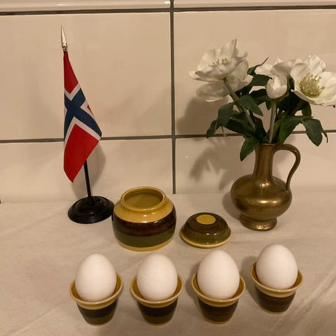 Selger en Sausbolle m/lokk og ett rundt Serveringsfat 31cm fra Porsgrunn Porselen kan sekges separate Saubollen kr.400.- fat kr 300.-