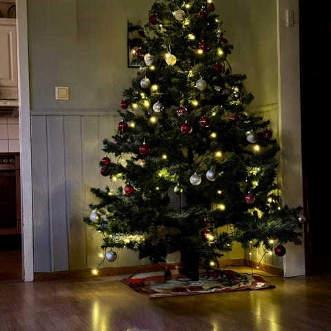 Juletreet er helt fint. Ca 174 cm. Lukter litt loft, men det går nok bort etter noen dager. Juletrefoten mangler skruer. Kjøpt på Skeidar.