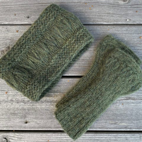 Sett med pannebånd /ørevarmer og pulsvanter /pulsvarmere, håndstrikket, nye