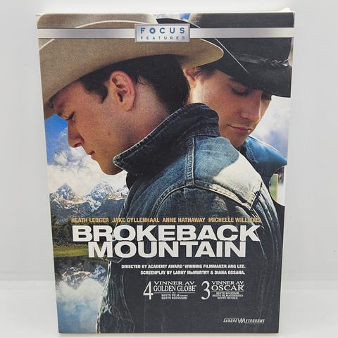 Brokeback Mountain DVD-film. Inneholder filmen Brokeback Mountain, en dramafilm med temaer som kjærlighet og relasjoner.