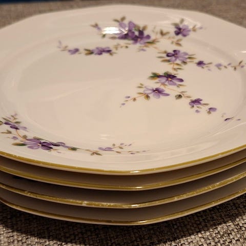 Selger et sett med 6 vakre vintage desserttallerkener/asjetter i porselen fra MZ Altrohlau, Tsjekkoslovakia.