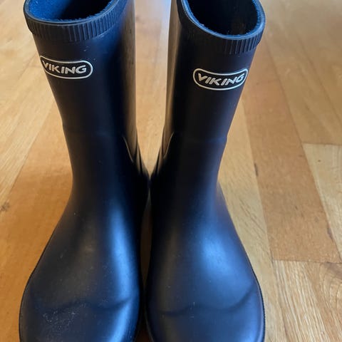Viking barn gummistøvler i størrelse 33, unisex modell. Laget for å gi beskyttelse mot vann og gjørme, egnet for bruk i våte og gjørmete forhold.