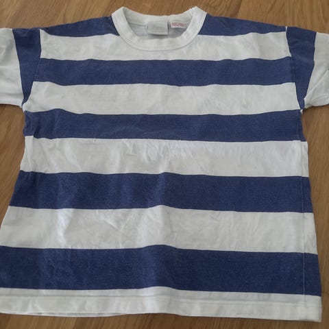 Primark T-skjorte for barn i størrelse 116, unisex. Laget av bomull og har blå farge. Designet med dinosaurmotiv og tekst på forsiden.