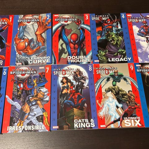 Marvel Ultimate Spider-Man tegneserie med Spider-Man på omslaget. Inneholder flere sider med tegneserieinnhold, egnet for lesere som er interessert i superheltserier.