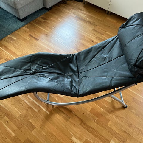 Loungestol med puff selges. Pent brukt. Farge grå.