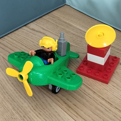 Lego Duplo sett 5592 - Mitt første fly - selges, Sette er meget pent brukt og selvsagt helt komplett. Et morsomt sett der posten skal fram med fly, så her er det bare å ta av og sette kursen riktig. Lett å bygge, med to figurer.