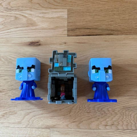 selger noen diverse småleker småfigurer fra minecraft