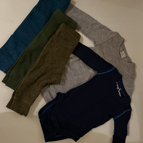 Den grønne bodyen er kun brukt én gang. Kjempefin med en liten tversoversløyfe til 🥹