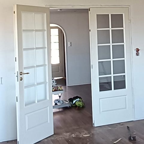 Helt ny glassdør fra Harmonie med sidefelt. Mål på dørblad ca 72 cm, mens sidefelt er ca 40 cm. Dørkarmen er ca 115 cm. Høyde er 210 cm. Ny pris 10 800 kr. Selger denne billig på grunn av at den ble kjøpt på feil mål. NB MÅ hentes.