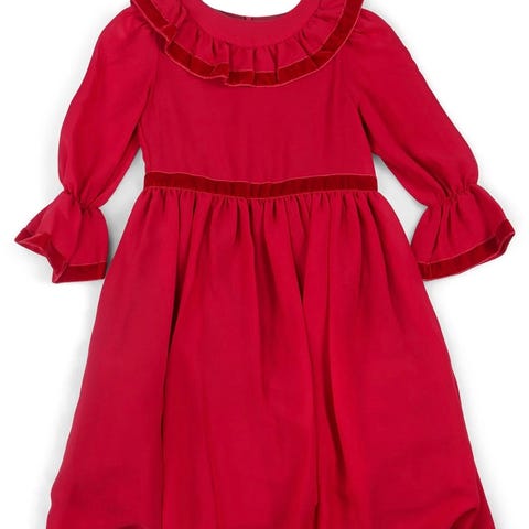 Nydelig julekjole fra Patachou i str 3 år (98). 100% bomull, myk og behagelig på. Flott julerød farge med marineblå detaljer. Kun brukt et par ganger.
