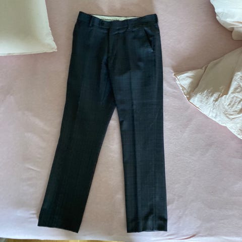Moods of Norway dress i størrelse 44, laget av ullmateriale. Fargen er mørk grå/koksgrå. Buksen er slim modell.